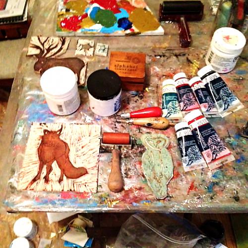 I've been exploring with all kinds of mediums. lately, it's been linocuts/collage using Japanese paper with resin to complete the works.